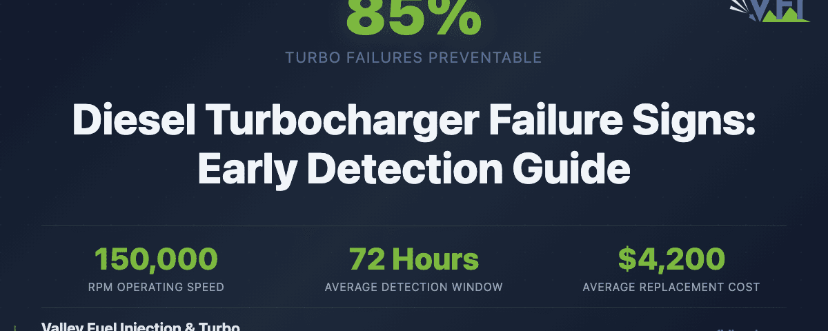 If you’re experiencing any diesel turbocharger failure signs with your heavy equipment or diesel truck, don’t wait for complete failure. Early detection and professional diagnosis can save thousands in repair costs and prevent extended downtime. Our team at Valley Fuel Injection & Turbo has over 30 years of experience diagnosing and repairing turbocharger problems for equipment owners throughout Northern California and Nevada.